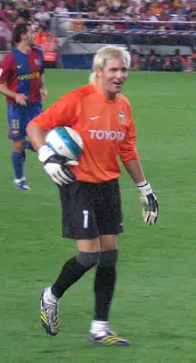 José Santiago Cañizares Ruiz (Spanish pronunciation: [xoˈse sanˈtjaɣo kaɲiˈθaɾes ˈrwiθ]; born 18 December 1969) is a Spanish former professional footballer who played as a goalkeeper, currently a rally driver.