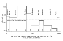 The total length of the railway from Metković to Sarajevo was 177.64-kilometre (110.38-mile), and the construction costs were 19,900,000 Dinars, and built in a total of four stages, namely:[14][15]