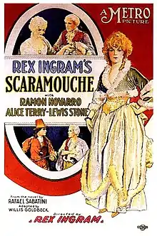 Scaramouche (1923) is a silent swashbuckler film based on the 1921 novel Scaramouche by Rafael Sabatini, directed by Rex Ingram, released by Metro Pictures, and starring Ramon Novarro, Alice Terry, Lewis Stone, and Lloyd Ingraham.