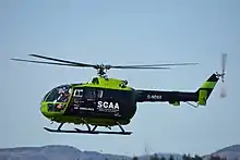 The organisation registered as a charity in Scotland in October 2010.[1] In late 2012, SCAA was hoping to raise money from public and private donations in excess of £1.5 million every year.[4] It commenced operations in May 2013, with a MBB Bo 105 airframe, registration G-NDAA, and flew 40 missions in the first month.[5] After two months, the service changed the hours it operated, allowing deployment later in the day. This change was to make the ambulance available at times of high demand.[6] By January 2014, the air ambulance had flown its 200th mission.[7] In May 2014, after a year of operations they had completed nearly 300 missions.[8] By February 2015, the ambulance had been despatched on almost 500 missions.[9]