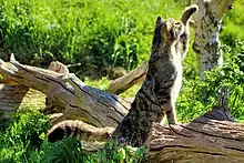 Six kittens were born at the Highland Wildlife Park in 2015.[35] From 2011 to 2016, there have been 15 surviving Scottish wildcat kittens born at the Highland Wildlife Park.[36] As of December 2016, around 80 Scottish wildcats were in captivity.[37] In 2023, a license was approved by NatureScot to release captive-bred wildcats into the Cairngorms region during the summer of that year.[38] The first of 22 cats were released in early June 2023, with a further 40 expected to follow in 2024 and 2025.[39]