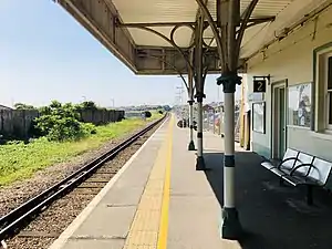 Seaford railway station is in Seaford, East Sussex, England. It is the terminus of the Seaford branch line of the East Coastway line, 58 miles 77 chains (94.9 km) measured from London Bridge.[1] The line to the station has been reduced to a single track and only one platform remains in use (previously two), though it is still numbered platform 2. Platform 1 is still visible but the track has been removed.