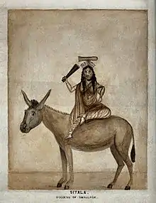 Indian goddess Sitala seated on a donkey Wellcome V0050537
