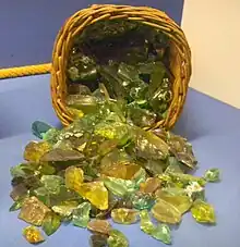 The shipwreck is often called the Glass Shipwreck because of many glass pieces found on the site. The glassware found was used as a ballast; glass cullet weighted two tons and "broken glassware and glass-making waste from some Islamic glass factory on the Fatimid Syrian coast" weighted one ton. The number of pieces was estimated as "between half a million and a million shards of broken glassware recovered from the wreck belonging to between 10,000 and 20,000 vessels".[2]