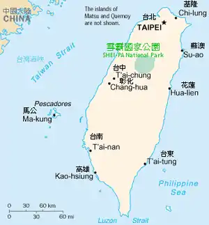- ↑ Spencer, David (24 November 2017). "Taiwan's Top 10 natural wonders". Taiwan News. Retrieved 27 November 2017.