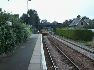 The station layout is slightly unusual in that the platforms are staggered (on the opposite sides of a road bridge, as can be seen in the accompanying photo) rather than being located opposite each other like other stations on the route. The station once had a goods yard which has now been converted to housing; its main building on the northbound platform still stands, but is not in rail use.