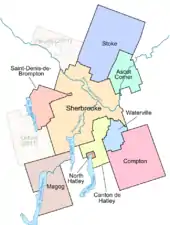 - ↑ "Répertoire des municipalités: Sherbrooke". Ministère des Affaires municipales et de l'Habitation (in French). Government of Quebec. Retrieved 29 December 2021.