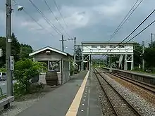 The station consists of two ground-level opposed side platforms serving two tracks, connected to the station building by a footbridge. The station is unattended.[1]