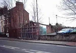 After Shrewsbury Abbey station closed, the goods yard was occupied by an oil depot until its closure on 5 July 1988. The site is now occupied by a surface car park, and the original station building and platform built for the Shropshire and Montgomeryshire was restored in 2005–06.[3] The building now serves as the headquarters of the Shrewsbury Railway Heritage Trust who open it to the public, hosting an exhibition on Shrewsbury's railway history, on certain days.