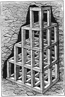 Square-set timbering as used in the Comstock mines, 1877.