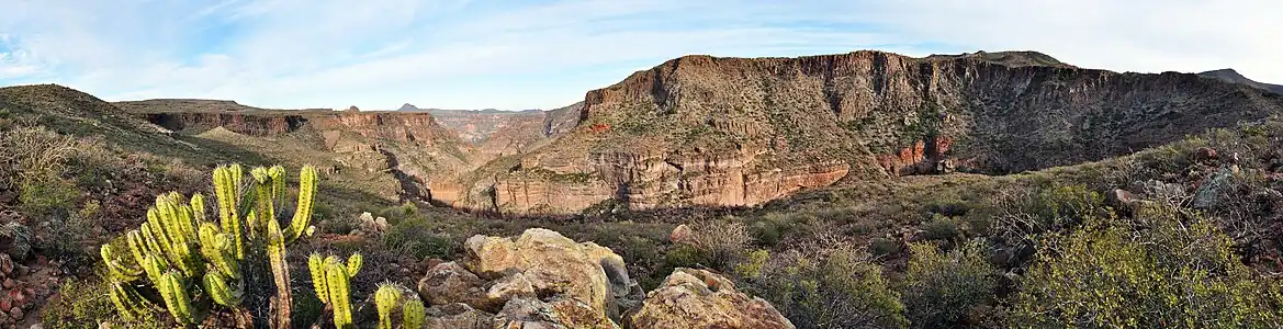 270° Panorama of a river-cut canyon in the Sierra de San Francisco of Baja California Sur.
