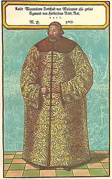 Siegmund (Sigismund) Freiherr von Herberstein[1] (or Baron Sigismund von Herberstein; 23 August 1486 – 28 March 1566) was a Carniolan diplomat, writer, historian and member of the Holy Roman Empire Imperial Council. He was most noted for his extensive writing on the geography, history and customs of Russia, and contributed greatly to early Western European knowledge of that area.