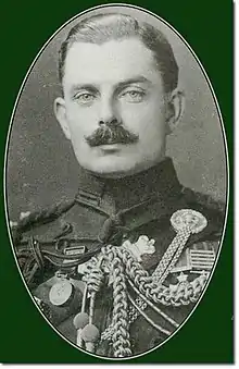 Later in the war Wake commanded a company on operations in the Orange Free State, the Colony of Natal, the South African Republic and Cape Colony.[2] Wake was appointed to the supernumerary rank of captain before 6 December 1902 and was appointed adjutant on 27 June 1903.[2][9][10] He returned to England on 28 June 1904 and relinquished his appointment as adjutant on 26 June 1906.[2] In 1908 he attended the Staff College, Camberley where Wilson was commandant.[8] He was advanced to the regimental rank of captain on 22 December 1908 and at the same time joined the Naval War Course for training.[11][12] In 1910 Wake was appointed a 3rd grade general staff officer and he worked at the War Office until 1911.[13]