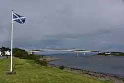 The Skye Bridge (Scottish Gaelic: Drochaid an Eilein Sgitheanaich) is a road bridge over Loch Alsh, Scotland, connecting the Isle of Skye to the island of Eilean Bàn. The name is also used for the whole Skye Crossing, which further connects Eilean Bàn to the mainland across the Carrich Viaduct.[1] The crossing forms part of the A87.