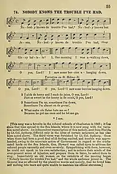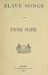 Slave Songs of the United States was a collection of African American music consisting of 136 songs. Published in 1867, it was the first, and most influential,[1][2] collection of spirituals to be published. The collectors of the songs were Northern abolitionists William Francis Allen, Lucy McKim Garrison, and Charles Pickard Ware.[3] The group transcribed songs sung by the Gullah Geechee people of Saint Helena Island, South Carolina.[4] These people were newly freed slaves who were living in a refugee camp when these songs were collected.[5] It is a "milestone not just in African American music but in modern folk history".[6][7][8][9] It is also the first published collection of African-American music of any kind.[10]