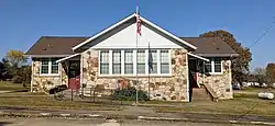 The Smithville Public School Building is a historic school building on Arkansas Highway 117 in the small community of Smithville, Arkansas. It is a single-story T-shaped fieldstone structure with a cross-gable roof.