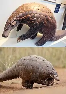 African ground pangolin (Smutsia - "Smuts's animal") is a genus of pangolins from subfamily Smutsiinae within family Manidae. It was formerly considered a subgenus of genus Manis.[4] Its members are the more terrestrial of the African pangolins.[5] In past, this genus was also present in Europe.[6]