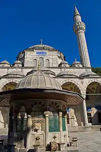 Sokollu Mehmed Pasha Mosque (Turkish: Sokollu Mehmet Paşa Camii) is a 16th-century Ottoman mosque in the Kadırga neighborhood in Fatih district, Istanbul, Turkey. It was commissioned jointly by the grand vizier Sokollu Mehmed Pasha and his wife İsmihan Sultan. It was designed by the imperial architect Mimar Sinan and completed in 1571/2. The mosque is noted for the fine quality of the Iznik tiles that decorate the interior walls.