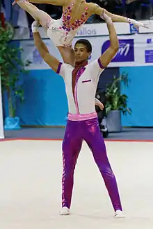 Solano Cassamajor and his partner Yana Vastavel at the 2014 Acrobatic Gymnastics World Championships