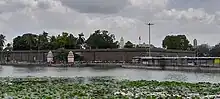 The fort has double fortification and has typical Bahmani era construction style. It has two gates, North gate and Mahakali gate, a Shani temple, a ruined Shiva temple with underground Shiva Linga and a Mahakaleshwar temple and a mosque with carved ceiling and several pillars inside it. Siddheshwar temple, Siddheshwar Lake and Hutatma Bagh are also present beside the fort.[1][2] The fort is constructed on land hence it is called Bhuikot Killa.