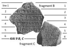 2. Donner, Herbert; Rölig, Wolfgang (2002). Kanaanäische und aramäische Inschriften (5 ed.). Wiesbaden: Harrassowitz. p. I, 2.