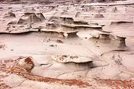 Although the majority of the film was filmed in the Dominican Republic, Friedkin did not hesitate to look for other locales to achieve the desired effect. One of the most notable ones is depicted in the film's climax. It features a surrealistic landscape on Navajo Nation lands in the Bisti/De-Na-Zin Wilderness, New Mexico:[15]
