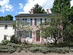 The common today consists of a roughly triangular area bounded by South East Street on all sides. Shays Street, Pomeroy Lane and Middle Street terminate into South East Street at the southwest side of the common. This triangular area is further cut by cross roads into a total of five different areas. The common itself is a grassy area unadorned by monuments and dotted with trees. Facing the common are primarily residences of 19th-century wood-frame construction, with a few instances of 18th and 20th-century buildings. One brick residence, the Enos Dickinson House, which was built in 1825 and for a time housed a post office, stands at 324 Pomeroy Lane with its eastern side facing the common, and there are four non-contributing but sympathetically styled 1950s Capes that also face the common.[2] Prominent non-residential buildings are the 1825 Congregational Church, the 1902 South Amherst School, and the 1930 Munson Memorial Library and Community Center.