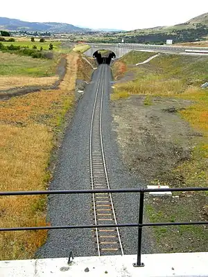 The line commences at the Hobart intermodal Terminal at Maquarie Point, on Hobart's waterfront. The line follows the western side of the River Derwent to Bridgewater, where the river is crossed by the Bridgewater Bridge. From here the line runs generally north east through easy country to Rekuna (between Tea Tree and Campania). From here the often steep and/or twisty climb commences, with little respite for train crews until Rhyndaston and its 955m long tunnel is passed, some 28 km later. The descent from near Parattah is not as steep or severe as its southern counterpart, although does still include a number of difficult sections including the Tin Dish and Nala deviations which were constructed in the 1930s to lessen gradients, although at the expense of more additional curvature in some sections. North of Antill Ponds, the line roughly parallels the Midland Highway as they both follow the agriculturally rich valley's formed by the Macquarie and South Esk rivers. The South Line finishes at Western Junction near Evandale, where it connects with the Western Line.[1]