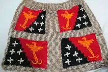 Papua New Guinea Bilum, red, black, beige and yellow, single handle, part of Weslake collection