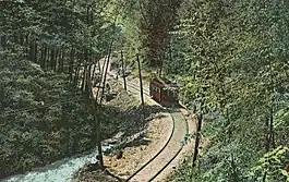 The line was laid north from Oneonta. It reached Laurens in July 1901, Cooperstown in September 1901, Richfield Springs in the summer of 1902, and Mohawk by 1906. A car barn, powerhouse, and dispatcher office were built in Hartwick. There was also a substation to power the line by the station in Schuyler Lake.[2] On April 19, 1901, the Village Trustees of Cooperstown unanimously voted to allow the line to enter the village via Chestnut Street to Main Street, on the condition that no car carrying freight run on village streets except from the southern village boundary to the CACV Railroad.[3]