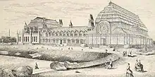 The building had two Germano-Gothic pavilions, one of which held a concert hall known as the 'Pavilion', while the other was the iron and glass Winter Garden (known as the 'Conservatory'). The Pavilion had a capacity for 2,500 people and the Winter Garden was a total 180 ft in length with a maximum height of 80 ft. (In comparison, the central section of the Kew Palm House is just over 137 ft long and 63 ft high.) Southport Winter Garden was advertised as the largest conservatory in England and being the first seaside Winter Garden in the UK. Refreshment rooms and an aquarium filled the basement level.