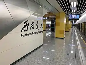 Southwest Jiaotong University (Chinese: 西南交大) is a station on Line 6 and Line 7 of the Chengdu Metro in China. It was opened on 6 December 2017.[1][2] The station serves the nearby Southwest Jiaotong University.