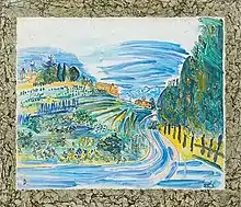 Calo-Séailles was born in Constantinople in 1885 where her name was Elpís Kalogeropoúlou. She first attracted attention as a mezzo-soprano and she acquired a patron who was willing to support her development. In 1923 she invented a type of decorative concrete and a patent was applied for in June 1923. The new material which went under the name Lap. Her invention was developed by her and her husband who was a Sorbonne Professor.[1] In 1929 her Lap materials was used in the construction and decoration of the Halles de Boulongrin in Rheims. They provided a challenge when the building was renovated in 2012 and the panels were replaced with GR.[1] In 1930 she was creating work using Lap with Tsuguharu Foujita.[2] Foujita made her portrait and also created several works in Lap at the company's base in Antony.[3]