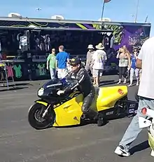 Another popular classes is "Pro Street", which features some bikes as fast as the upper six-second range, street tire motorcycles with no wheelie-bars traveling down the track at over 200 mph. "The Pro Street class is a professional heads-up class that contests the ultimate in street-legal motorcycles" (Series Information). These bikes appear similar to ordinary streetbike, but have a vast array of performance-enhancing products, turbo or nitrous oxide for example. The Pro Street motorcycles are often just as fast as a pro stock motorcycle but resemble more of a street appearance with working headlights and taillights along with street tires.
