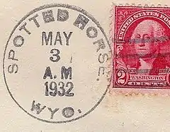Spotted Horse is an unincorporated community in Campbell County, Wyoming, United States. Its current population is two.[2] The town is on U.S. routes 14/16, at the head of Spotted Horse Creek, a tributary of the Powder River. The undeveloped Spotted Horse coalfield is north of town.[3]