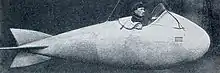 Captain Ernst A. Lehmann, the German airship captain, described in his book The Zeppelins how he and Baron Gemmingen, Count Zeppelin's nephew, had developed the device. To test the prototype he blindfolded the helmsman of the airship and allowed himself to be lowered by a winch from the bombroom in a modified cask, equipped with a telephone. Hanging some 150 metres (500 ft) below the airship using a compass he could tell the blindfolded helmsman which bearing to take and effectively drive the airship.[4] He later recounted how, while returning from the aborted raid on London in March 1916[5] in the Z 12, Baron Gemmingen insisted on being the first to use it on their secondary target, Calais. The basket was equipped with a wicker chair, chart table, electric lamp, compass, telephone,[5] and lightning conductor. With the Zeppelin sometimes within, sometimes above the clouds and unable to see the ground, Gemmingen in the hanging basket would relay orders on navigation and when and which bombs to drop. The Calais defenders could hear the engines but their searchlights and artillery fire did not reach the airship.[4]