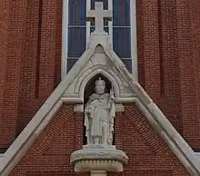 A brick rectory lies next to the church's eastern side. Built in 1901, it combines a range of architectural styles into an elaborate house. Located behind the rectory are a catechetical center and a public elementary school.[6] An older parochial school was once located on the church's western side; built in the Italianate style in 1905, it served as a public junior high school after the church discontinued its use.[2]