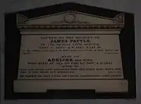 The memorial of James Pattle, the great-great-grandfather of William Dalrymple is also located on the south walls of St. John's Church.