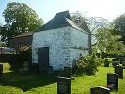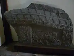 In the east wall of the churchyard is a slab 1.45 metres long and 38 centimetres broad at one end and 30 centimetres at the other. It contains an incised floriated cross head, with a trefoil cut on each side of the stem just below the crosshead. On the right side is a book of the gospels 15 centimetres long. The cross stands on Calvary steps. On the same wall is a second slab 34 centimetres long 20 centimetres wide at the top and 13 centimetres at the bottom. The cross is also on Calvary steps and the slab has chamfered edges.[16]