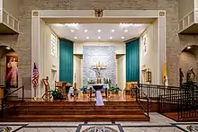 The history of St. Theresa goes back to the 1840s. The only two chapels in the area were in Donaldsonville, Louisiana across the Mississippi River and in St. Gabriel, Louisiana at the St. Gabriel Catholic Church. The settlers had to cross the river or make the long journey on horse or wagon to these churches. It was known that a new church was needed. The new church was built in Cornerview near Gonzales, Louisiana. This church was renamed Sacred Heart at Cornerview.[1] As the town's population grew the railroad line from Baton Rouge to New Orleans expanded, and River Road and the new Airline Highway cut through Gonzales, a declaration was made to transfer the church from Cornerview to Gonzales. The Cornerview church parishioners signed a protest letter to Archbishop James H. Blenk SM of New Orleans. A new church was then built at the same site near the L and R railroad tracks in downtown Gonzales. It was renamed to St. Theresa upon the request of a benefactor. This church was completely built by parishioners and was thought of as "the ugliest church ever." The parishioners wanted a new church as the steeple was about to fall down. A new church was built in the midst of World War II and is the church that stands today. In 1959 a catholic school was built behind the church building.[2][3] The school is under the same name as the church. After its construction in 1959, the building has been added on to and changed with the additions of a library in 1981, a gym in 1992, a science and computer lab in 2002, and expansion of the front office in 2023l.[4] Another campus was built in Prairieville in 2003. It hosts pre-k through 3rd grades while St. Theresa hosts 4th through 8th grades. The current principals are Micah Ballow and Andy Kling.