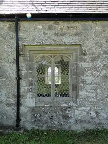 Internally, the chancel arch dates from the 13th century.[10] It is 12 feet (3.7 m) wide and 19 feet (5.8 m) from the floor to the top of the arch; the supporting pillars are 10 feet (3.0 m) tall.[11] There are windows from the early 16th century in the chancel, with the large east window in Perpendicular style (in contrast to the rest of the church, which is mainly in Decorated style).[10] It has five ogee-headed lights separated by vertical tracery, and measures 10 feet 10 inches (3.3 m) at its widest point by 14 feet 2 inches (4.3 m) at its tallest.[10][11] Unlike most of the other windows in the church, it contains coloured glass.[1] A smaller window in the north wall also dates from this time, and has a square frame containing two lights; a matching window was added in the 19th century in the opposite wall. The other windows in the church are from the 19th century in various designs.[10] One window, in the north wall of the nave, has had stained glass added as a memorial to two local residents who died in the 1990s.[1]