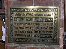 - 1904–1910 W.H. Wilson Carriss (There is also a brass tablet in his memory on the left pillar of the chancel arch.)