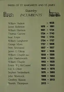 3. "St James, Staveley". A Church Near You. The Church of England. Retrieved 16 October 2017.