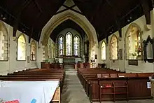 St James' Church, Staveley is a Grade II listed parish church in the Church of England in Staveley, Cumbria.[4] Its benefice is united with that of St Martin's Church, Bowness-on-Windermere; St Anne's Church, Ings; St Cuthbert's Church, Kentmere; Jesus Church, Troutbeck and St Mary's Church, Windermere.[5]