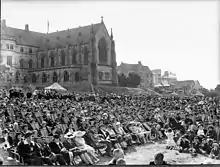St. John's was established as a Benedictine foundation by Archbishop Polding, who had formerly been an English Benedictine monk at Downside Abbey. The English Benedictines were prominent in the raising of public support for the founding of St John's; Dom Maurus O'Connell, Dean of St Mary's Cathedral, Sydney, and the first Australian-born Benedictine priest, was appointed as the first rector of the college in 1858. When Roger Bede Vaughan, a former monk of Downside Abbey, arrived in Sydney as Polding's coadjutor bishop in 1873, he was elected by the fellows as rector. Vaughan retained the rectorship until he succeeded Polding as archbishop in his own right, but continued to live in the college and use it as his episcopal palace.[3] Vaughan's secretary—Anselm Gillett, a monk of Ampleforth, who had been resident at Belmont Priory during Vaughan's time as superior before his departure for Australia—acted as rector during Vaughan's time as archbishop. After Vaughan's death and Gillett's return to England, another Benedictine, Fr. David Barry, was appointed rector in 1884. In the latter part of the 19th century, the College Council was dominated by clerical fellows who were Benedictine monks, and the majority of its students were affiliated with Benedictine Lyndhurst College, Glebe.[4]