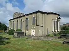The body of the church is of brick, built in 1717, replacing an earlier timber-framed building destroyed in a fire. The sides have tall windows with round arches. The chancel was added in 1788; it has an apsidal east end with a Venetian window. It is thought that Enoch Wood, the churchwarden, instigated the building of the chancel.[1][2]