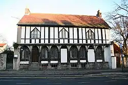 In 1470, the hospital was relocated to the north side of Tickhill Market Place.[2] An inscription above the door suggests that the rebuilding was the work of a John Leftwul.[4] The reasons for the move are unknown, but David Hey notes that this must have involved a change in purpose, as town centres were not considered suitable locations for lepers.[2] The building eventually declined; by the 1840s, it was used as tenements, but the facade was substantially intact.[4] It was heavily restored in 1851, with the upper floor being completely rebuilt in a Gothic revival style.[2] In 1898, it was purchased by the local parish church, who turned it into a parish meeting room. It was again restored in 2007.[5]