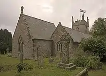 The church dates from the 13th century with the tower dating from the 14th and 15th centuries. It was restored in 1827 when the north wall was rebuilt. The chancel roof was restored by the vicar in 1861 and a further restoration took place in 1879 to 1880 under the direction of the architect James Piers St Aubyn.[2] It was by then in a ruinous state and no longer possible to worship within.[3] In the 1880 restoration considerable portions of the north and south walls were rebuilt, and several new windows were inserted. The chancel and east window of the north aisle were filled with stained glass, and in the north-east corner a new window of coloured glass was inserted in memory of M. Nowell Peters who died in 1880. The contractor for the restoration was Messrs May of Pool, and it cost £1,500. The church reopened on 30 June 1880.[4]