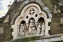 It was designed in the Neo Gothic style by Samuel Sanders Teulon and he considered it the best of the 114 churches he designed, calling it his "mighty church" – it was also the most expensive of them. He accepted the commission to design it after Sir Thomas Maryon Wilson, Lord of the Manor of Hampstead, offered Hampstead Green to be the site for a new church in 1864. From 1864 to 1867 funds were raised (the projected cost was estimated as £7,500; the final sum was actually £27,000). External sculptures are by Thomas Earp. Some mosaics by Salviati have survived in the chancel.[1]