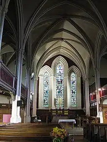 A new organ by Vincent and Co. replaced the Elliot and Hill instrument in 1902, which was rebuilt by Binns, Fitton and Haley in 1931. This in turn was extensively rebuilt by Harrison and Harrison in 1961. It is of some local renown, and in its heyday, many recitals by leading organitsts were played on it. A specification of the organ can be found on the National Pipe Organ Register. It is not typically used at services, the music being provided instead by a worship band.[4]